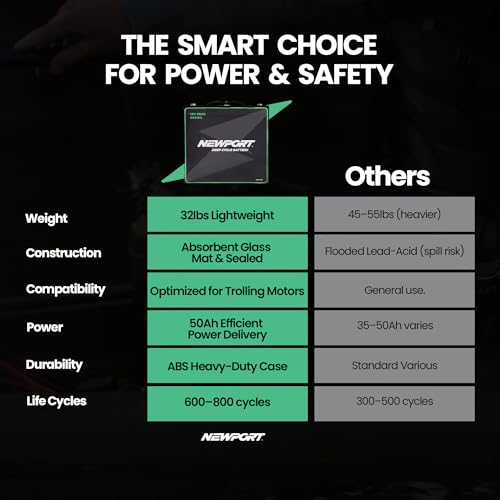 - 32lbs - The lightweight design of the Newport deep Deep cycle battery makes it easy to transport and install in your marine vessel. Enjoy powerful and reliable performance without adding unnecessary weight to your boat.